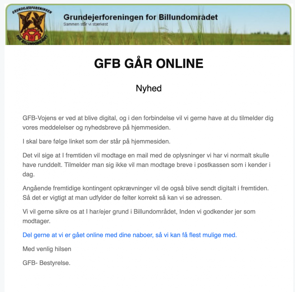 Til medlemmerne af GFB der har ratebetaling vedr. de grønne områder.