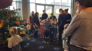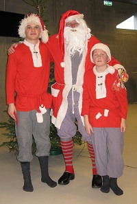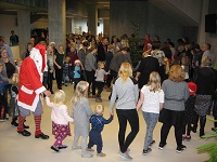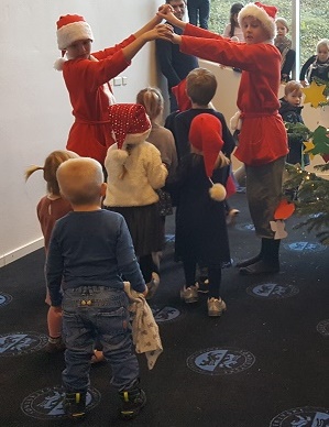 Julemanden og hans nisser arrangerer dans om juletræet, samt leger og synger med børnene.
