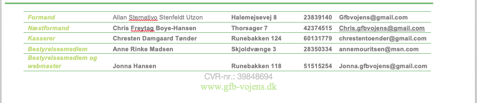 Såfremt du ønsker at kontakte en af Grundejerforeningens bestyrelsesmedlemmer, er du meget velkommen til at skrive til bestyrelsen.
