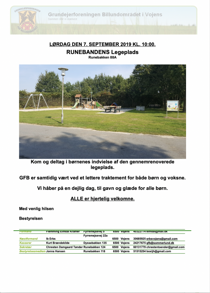 Det er dejligt, at der er så stor aktivitet på GFBs nye legeplads - Runebandens Legeplads - på Runebakken 88A.
